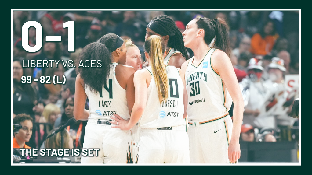 The stage is set. The lights dimmed after two undercards. Time for the main event, the newest show in two cities on opposite sides of the United States. Fans traveled by thousands to watch the new rivalry, the battle of the basketball best: the New York Liberty and Las Vegas Aces in Game 1 of the WNBA Finals.